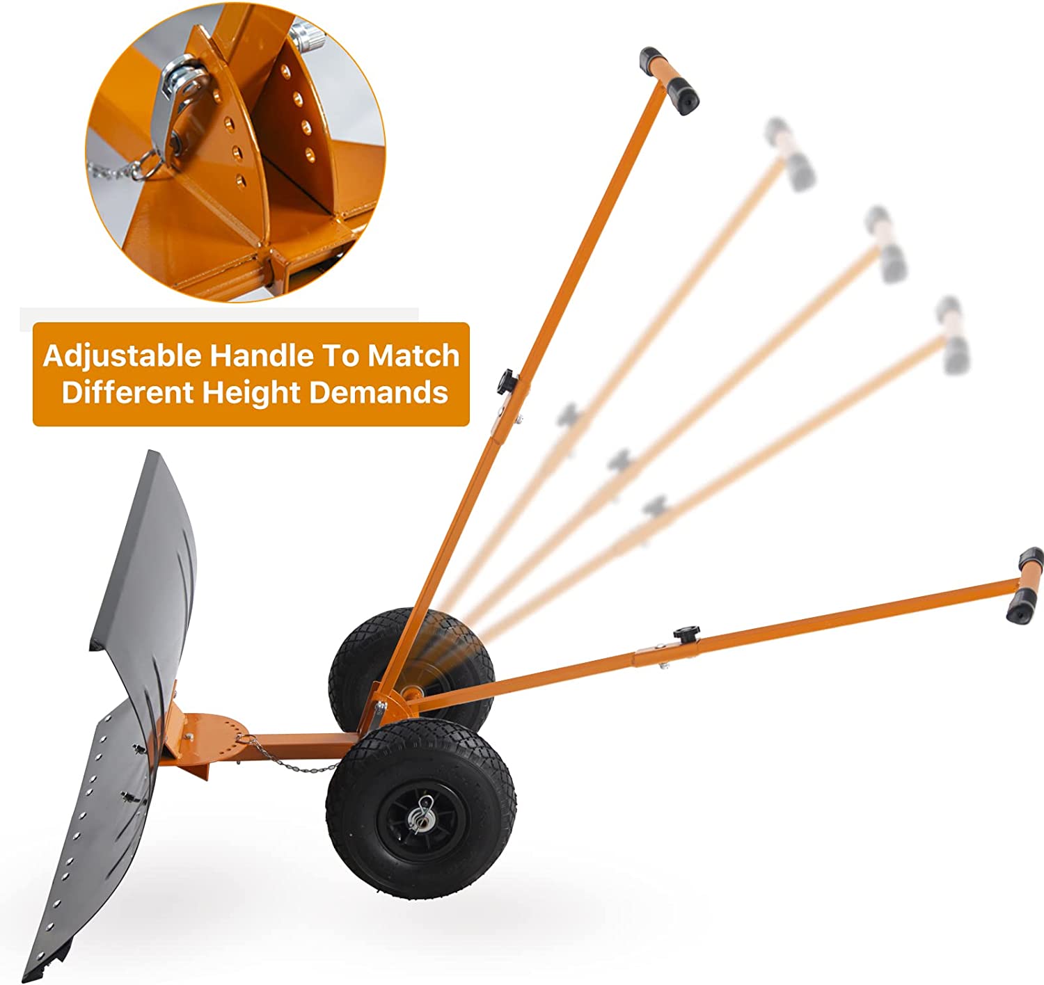 - Adjustable Handle: The rolling snow pusher handle has 5 gears to adjust, you can adjust the snow shovel push plate angle by turning different gears, find a most comfortable angle for yourself to more easily push the snow shovel with wheels. Snow pusher handle lenghth adjustable as well, you can easily adjust the handle length according to different height requirements.